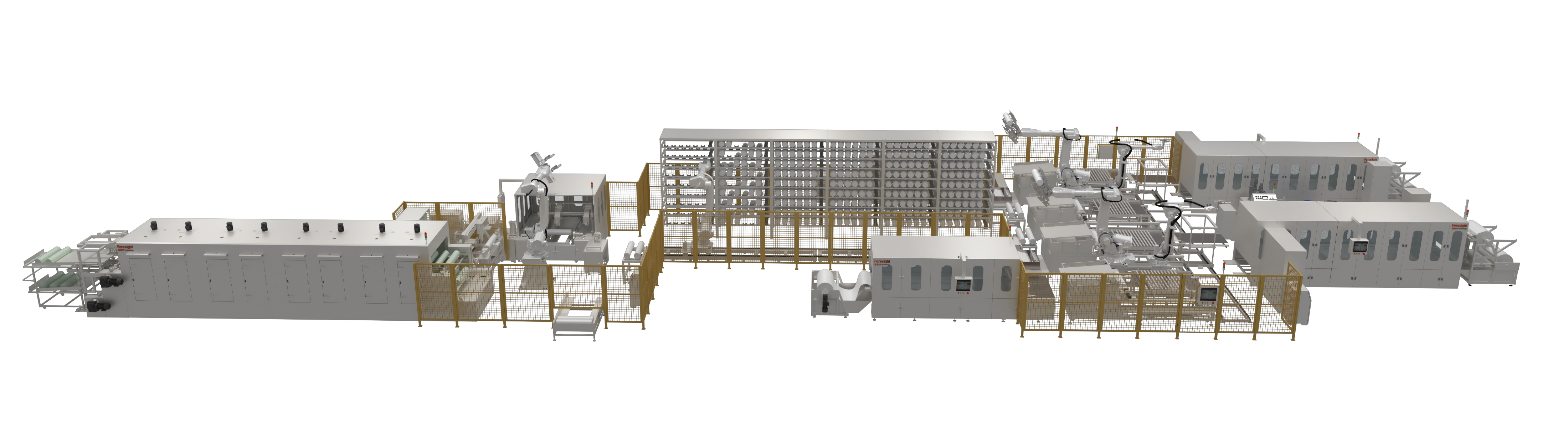 前段卷膜線    標(biāo)配折膜站*N、焊接站*N、卷膜站*2N、中心管供料*N